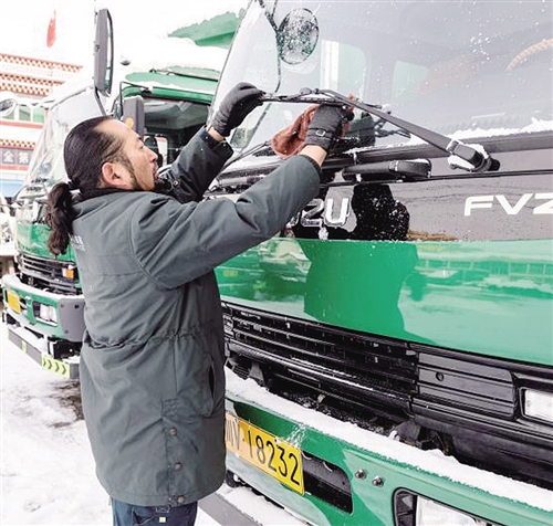 其美多吉在出班前檢查車輛。經(jīng)濟日報-中國經(jīng)濟網(wǎng)記者 張 雪攝