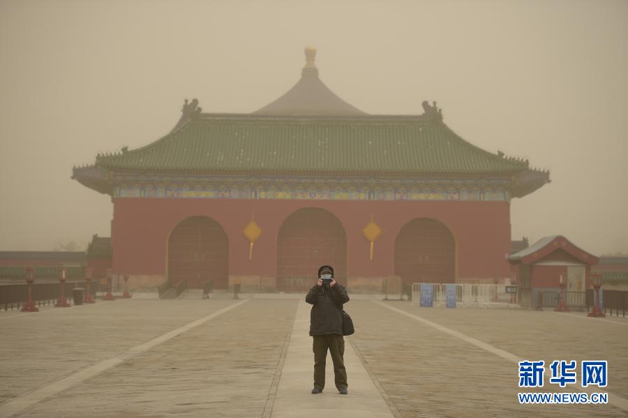 3月15日,市民在北京天壇公園里拍照。當(dāng)日,我國(guó)北方多地出現(xiàn)沙塵天氣。新華社記者 彭子洋 攝