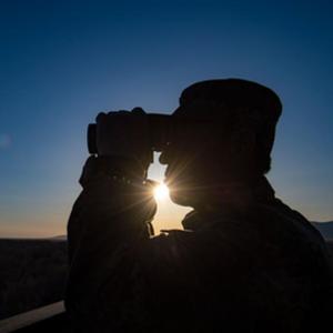 新疆生產(chǎn)建設(shè)兵團(tuán)第10師185團(tuán)職工馬軍武(右)在巡邏途中(4月9日攝)。