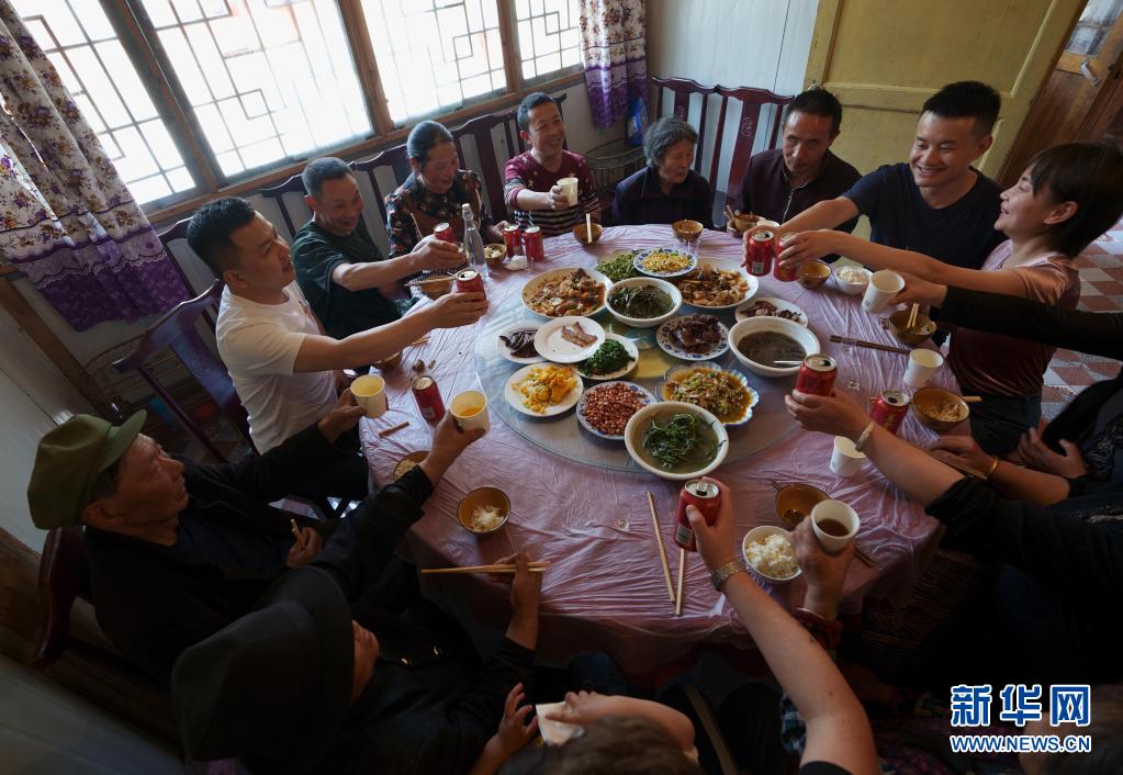 5月4日,林興聰、李蕓香一家團(tuán)聚在一起吃午飯。 新華社記者 江宏景 攝