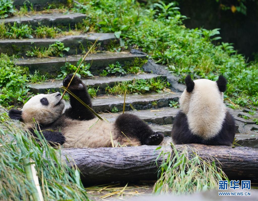 這是5月15日在中國大熊貓保護(hù)研究中心雅安碧峰峽基地拍攝的大熊貓。