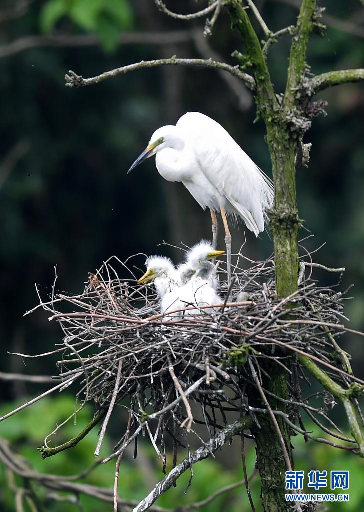 在南昌市新建區(qū)象山森林公園內(nèi),白鷺和雛鳥(niǎo)們?cè)谝黄穑?月18日攝)。