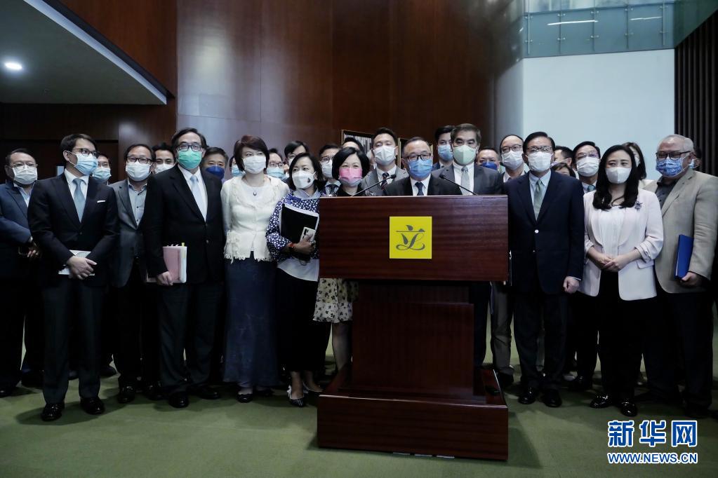 5月27日,在香港特區(qū)立法會(huì),建制派議員集體接受記者采訪。新華社記者 王申 攝