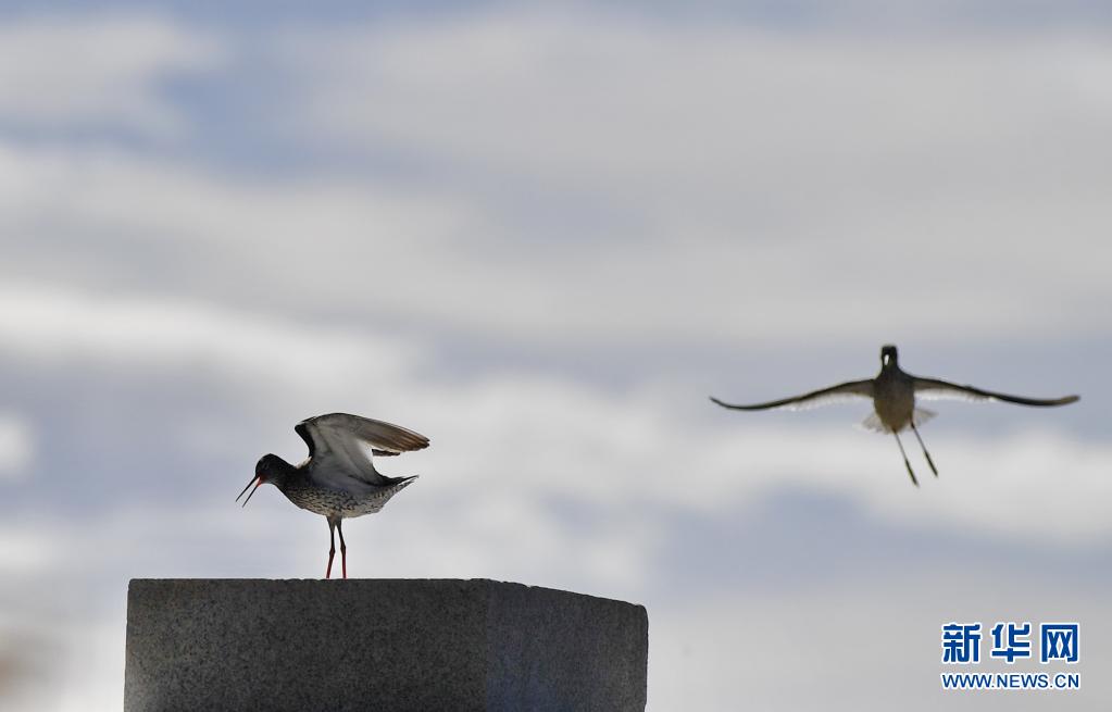 初夏,紅腳鷸在位于西藏拉薩的拉魯濕地國家級(jí)自然保護(hù)區(qū)內(nèi)起舞覓食。
