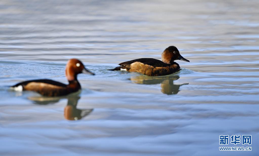 6月14日在拉魯濕地拍攝的兩只小??。夏日里,鳳頭??和小??在西藏拉薩拉魯濕地國家級(jí)自然保護(hù)區(qū)水面上嬉戲。新華社記者 張汝鋒 攝