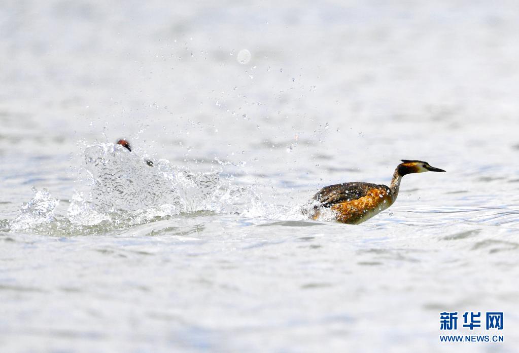6月14日在拉魯濕地拍攝的鳳頭??。夏日里,鳳頭??和小??在西藏拉薩拉魯濕地國家級(jí)自然保護(hù)區(qū)水面上嬉戲。新華社記者 張汝鋒 攝
