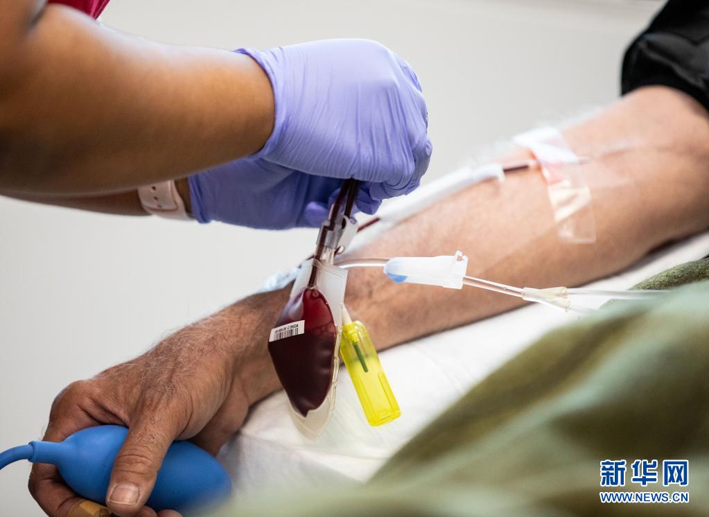 6月14日,在美國芝加哥,一名獻血志愿者在大芝加哥地區(qū)紅十字會一獻血站內(nèi)獻血。新華社發(fā)(喬爾·萊納攝)