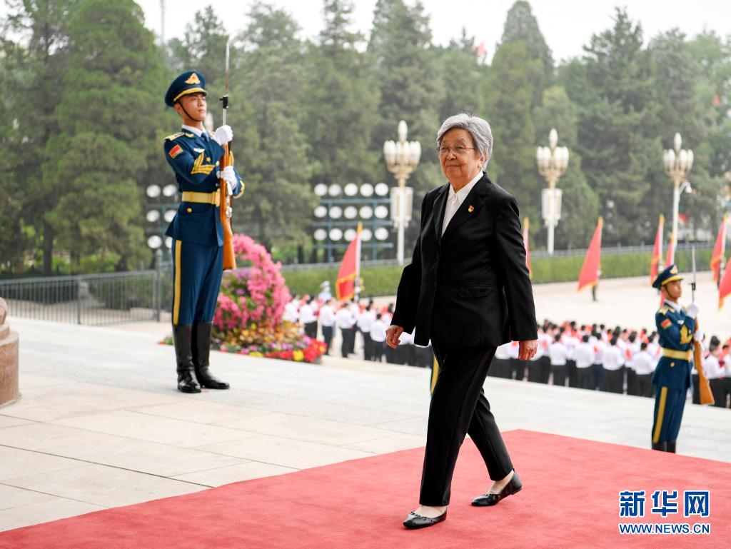 這是黃寶妹抵達(dá)人民大會堂。