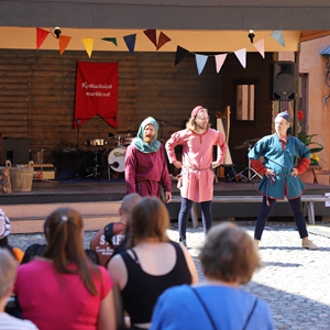 7月1日,觀眾在芬蘭圖爾庫舉行的“中世紀市集”上觀看演員表演短劇。