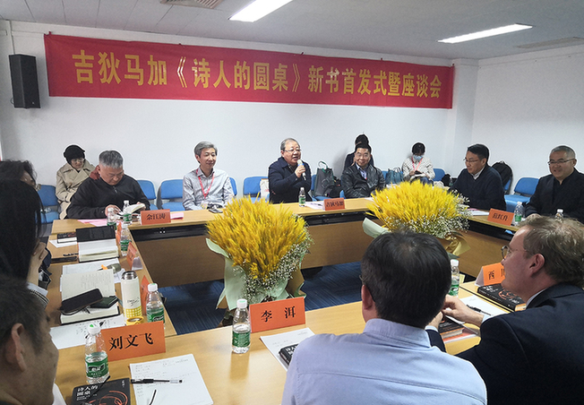 新華網(wǎng)北京4月1日電 由江蘇鳳凰文藝出版社主辦的吉狄馬加《詩人的圓桌》新書首發(fā)式暨座談會(huì)于3月31日下午在北京舉行。中國作協(xié)副主席、書記處書記,著名詩人吉狄馬加與著名作家李洱,著名詩人、翻譯家高興、西川、樹才、劉文飛,以及法國駐華使館公使銜文化參贊高明、鳳凰出版?zhèn)髅郊瘓F(tuán)總經(jīng)理孫真福、鳳凰出版?zhèn)髅焦煞萦邢薰究偨?jīng)理佘江濤等嘉賓出席此次活動(dòng),就新書內(nèi)容、詩歌寫作與翻譯及中外詩歌交流等話題展開對(duì)話。