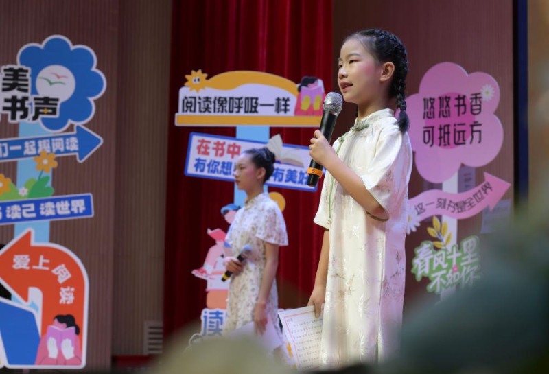 3月27日,新疆教育学院实验小学学生在活动中分享阅读后的心得体会。