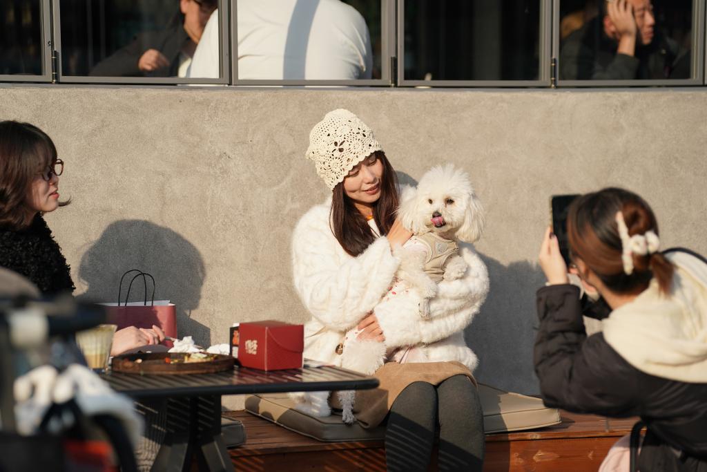 12月4日,游人在西安时光文化公园消费休闲。这座公园是由西安国营第一钟表机械厂旧厂区改建而来的。