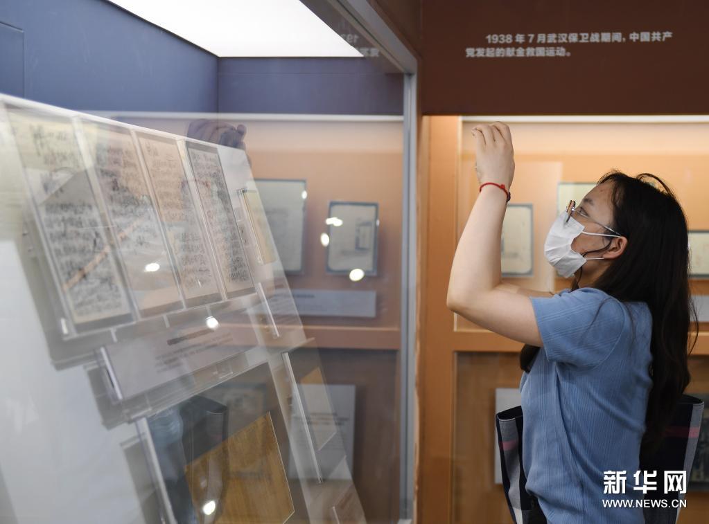 7月7日,觀眾在中國人民抗日戰(zhàn)爭紀(jì)念館參觀“中流砥柱——中國共產(chǎn)黨抗戰(zhàn)文物專題展”。新華社記者 張晨霖 攝