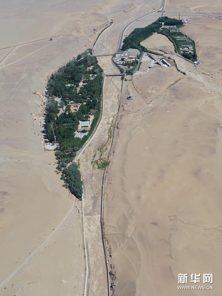 大泉河及其流經(jīng)的敦煌莫高窟(7月6日攝,無人機(jī)照片)。新華社記者 劉詩平 攝