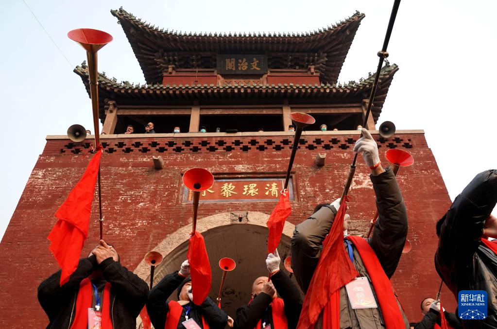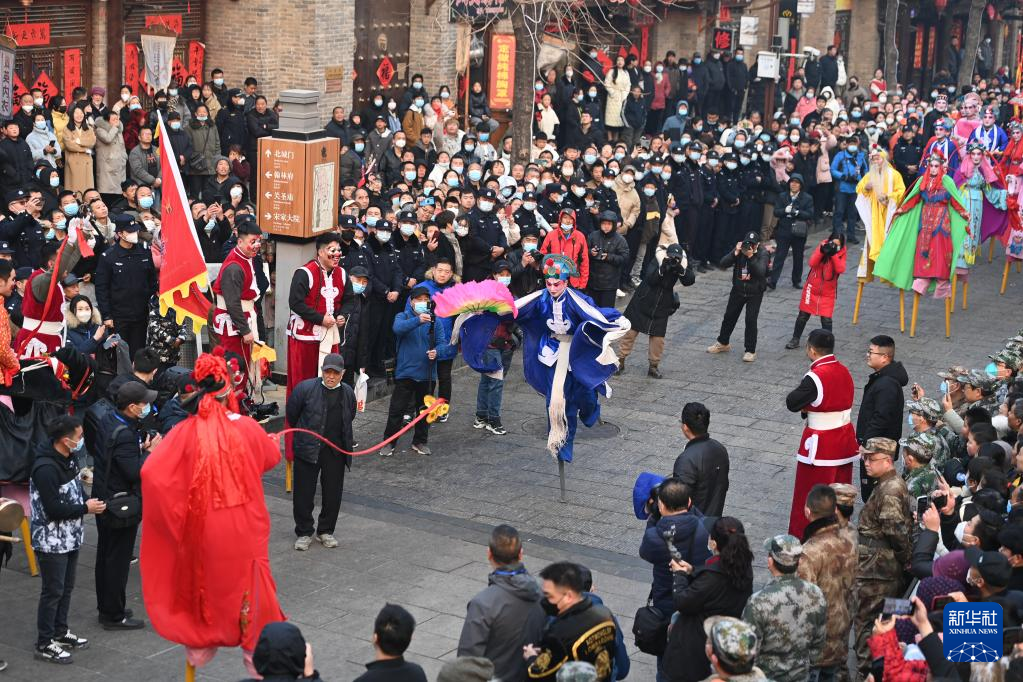 当日是农历正月十六,在河南省浚县举行的正月古庙会上,几十支社火团队轮番表演,踩高跷、扭秧歌、耍狮子,锣鼓喧天,热闹非凡,形成一道富有特色的中原文化景观。河南省浚县的正月古庙会已有1600多年历史,有“华北第一庙会”之称,被誉为民俗文化的“活化石”,是中国民间文化保护工程项目、国家级非物质文化遗产。