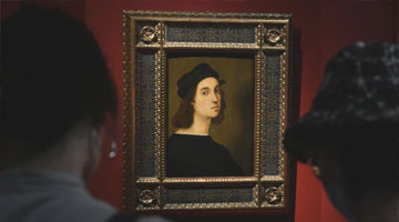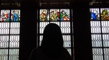 4月24日晚,在德清县禹越镇东港村文化礼堂,村民们在观看皮影戏影偶道具。