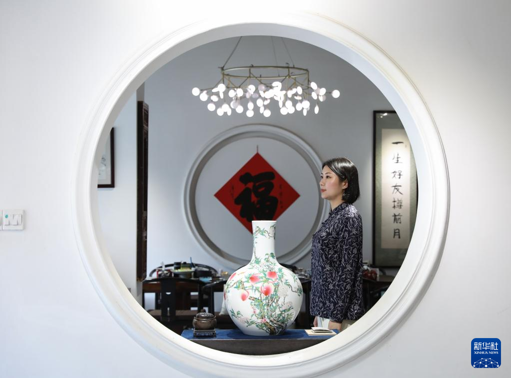 作为一名省级非遗传承人,蔡文娟不仅不断深研传统非遗技艺,还成为了一名创业者。她组建团队成立文创品牌,创新设计,让传统的青花元素衍生跨界;通过收集古陶瓷借鉴纹样,结合新的载体,设计出符合当代审美的青花产品。“景德镇传统陶瓷文化既需要代代守护,也需要与时俱进,这样才能让景德镇传统陶瓷文化在新时代焕发出新光彩。”