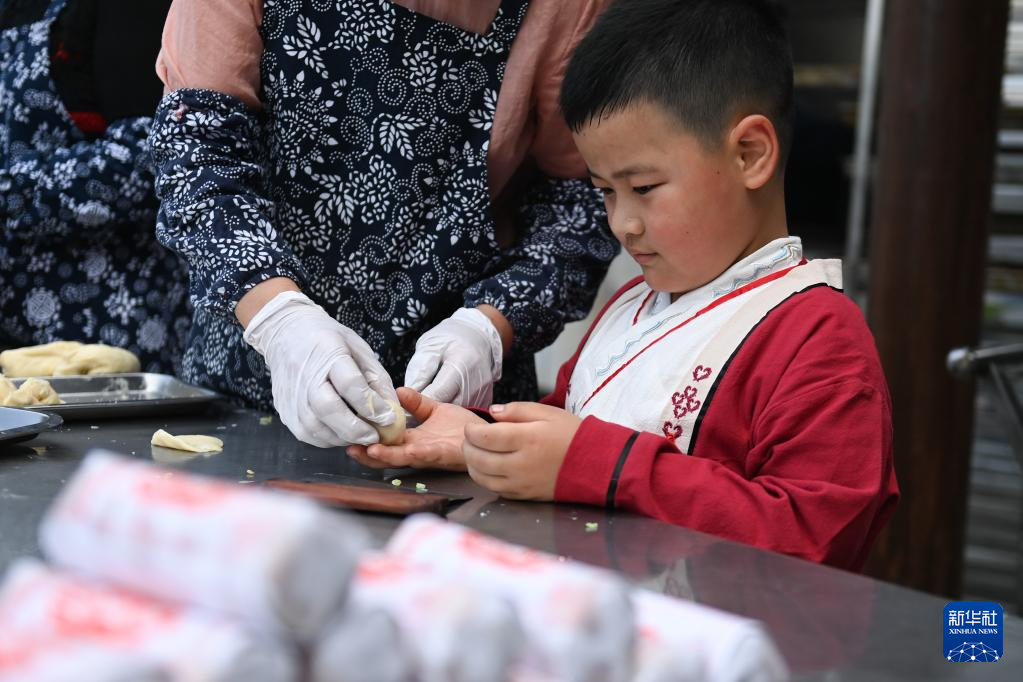 5月4日,小朋友学习制作“立夏饼”。