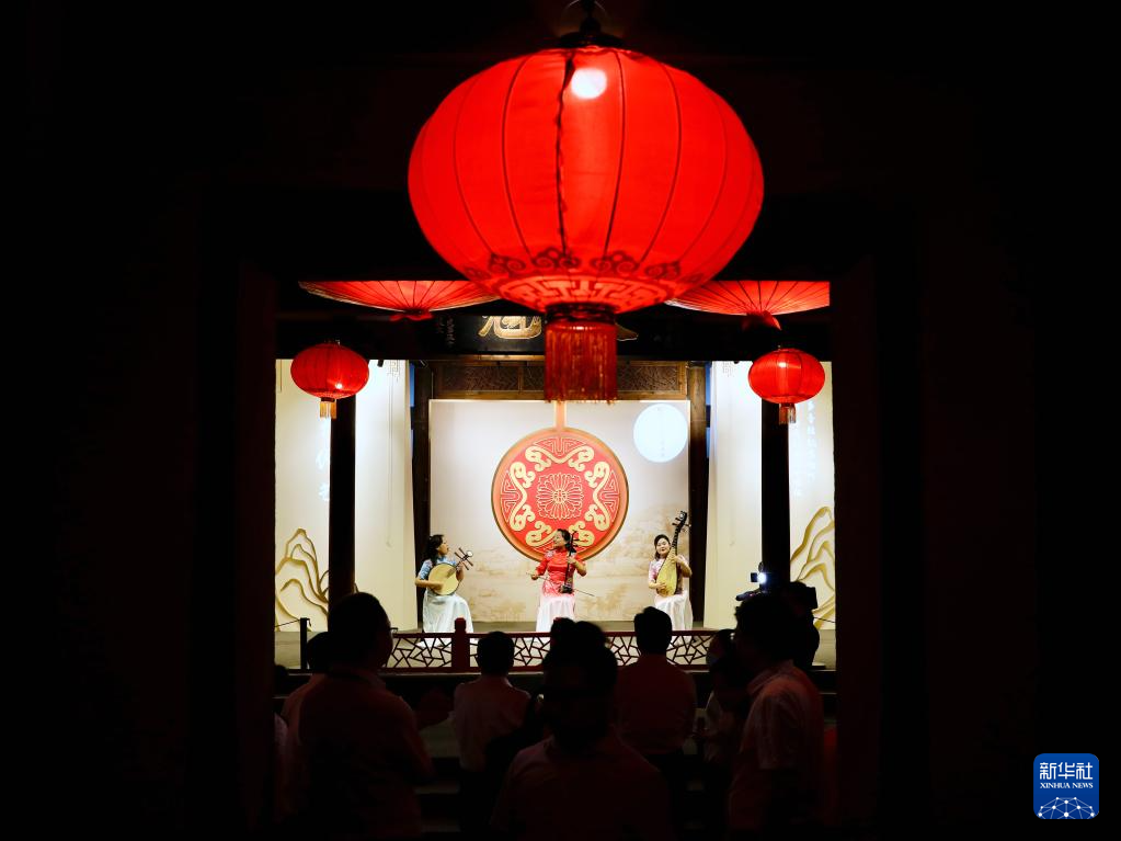 5月18日,观众在福州市三坊七巷历史文化街区参观沉浸式实景演出。