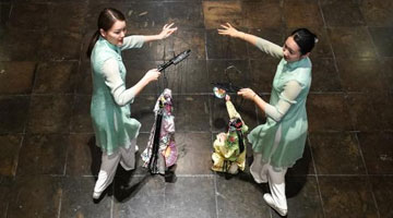 5月18日,小学生在河北省石家庄市新华区一家清代建筑博物馆体验瓦当拓片。