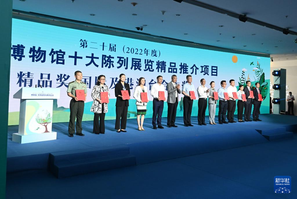 5月18日,获评中国博物馆协会第二十届(2022年度)全国博物馆十大陈列展览精品推介项目的代表在开幕式上获颁证书。