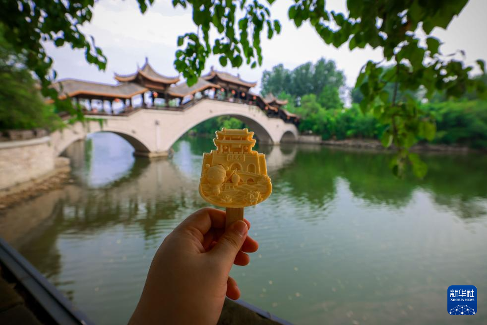 7月20日在山东省枣庄市台儿庄古城拍摄古建筑造型文创雪糕。