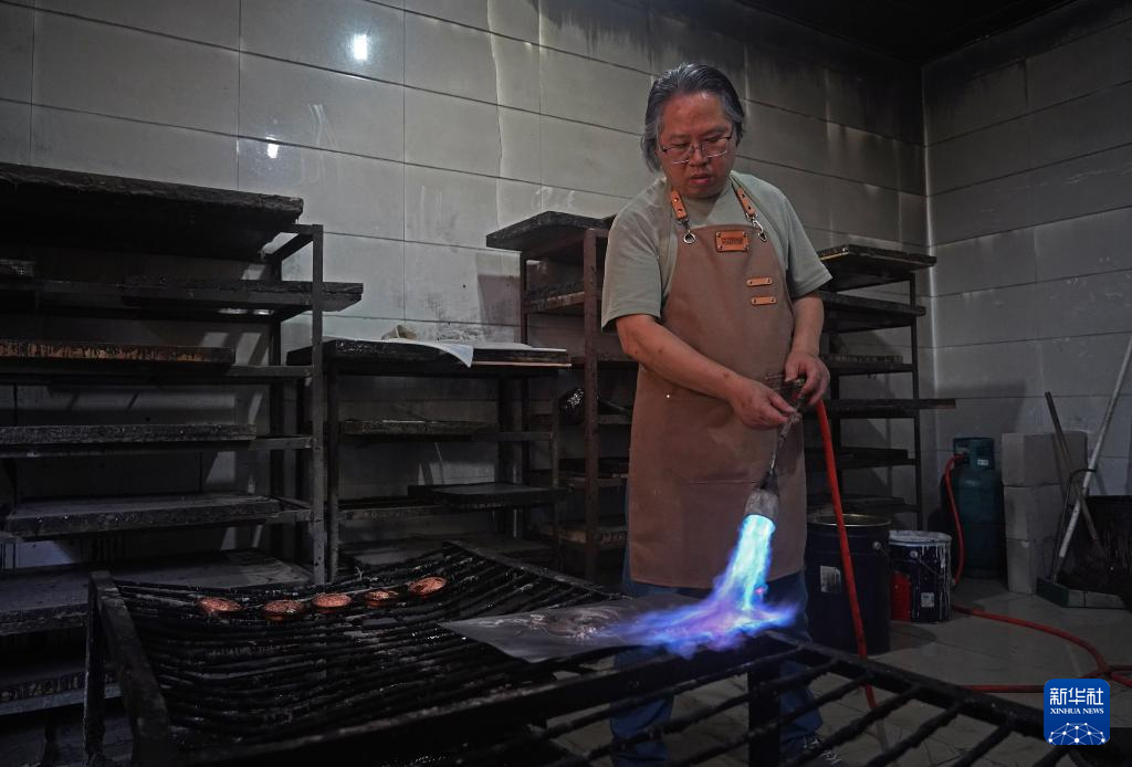黄俊军在将铜版画进行淬火(7月13日摄)。