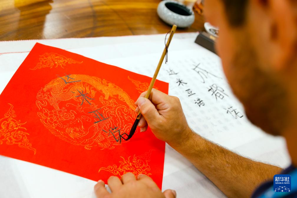 7月31日,在成都大运村的“汉语桥”中文学习互动体验区,罗马尼亚运动员斯特凡妮娅-帕特里夏·克蒂内安通过拓印的方式感受中国汉字的魅力。