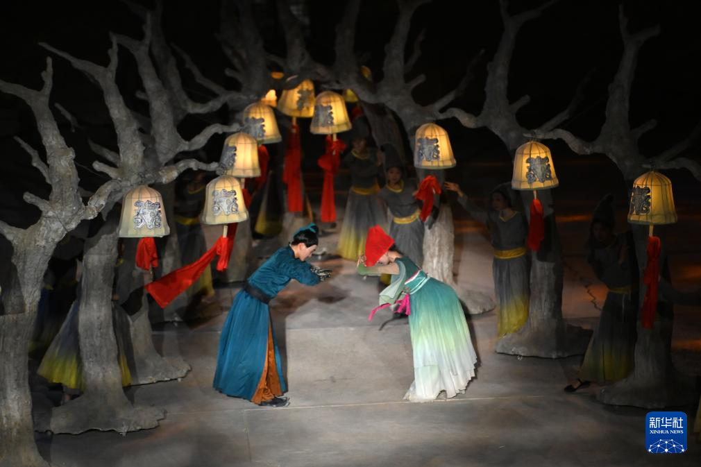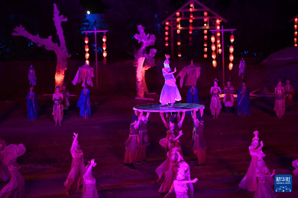 今年以来,脱胎于敦煌文化的洞窟沉浸式体验剧《乐动敦煌》、室内情景体验剧《又见敦煌》、沙漠实景演出《敦煌盛典》和中国残疾人艺术团情景音画剧《千手千眼》四场剧目在丝路名城甘肃敦煌同步上演,剧目将敦煌历史底蕴、服饰文化、乐舞文化等生动融合,为游客呈现出精彩绝伦的敦煌文化视觉盛宴,深受中外游客喜爱。截至8月10日,四大剧目今年已累计演出1175场次,观看游客突破66万人次。其中,《敦煌盛典》以敦煌鸣沙山月牙泉为背景,将沙漠景观与现代舞美结合,将墙体灯光融入实景演出,讲述了一段发生在古丝绸之路重镇敦煌的爱情故事,展示了敦煌的历史文化及人文风貌。