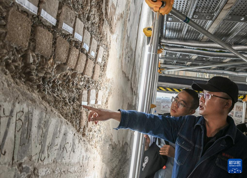 在敦煌研究院多场耦合实验室内,一位工作人员介绍针对陕西西安秦东陵模型所进行的环境模拟实验情况(8月3日摄)。