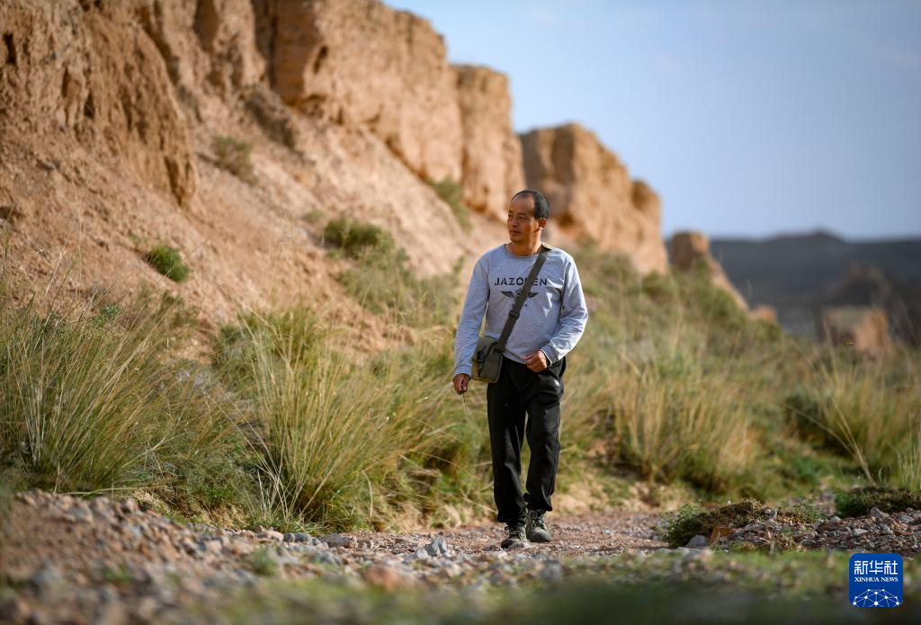 今年42岁的董海宁,从小在长城脚下长大。2016年,董海宁被聘为宁夏永宁县长城保护员,两年后又被聘为内蒙古阿拉善左旗的长城保护员。