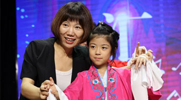 8月26日,在数字技术支撑下,游客在国家海洋博物馆“鲸奇物语”展区与虚拟海洋生物互动。
