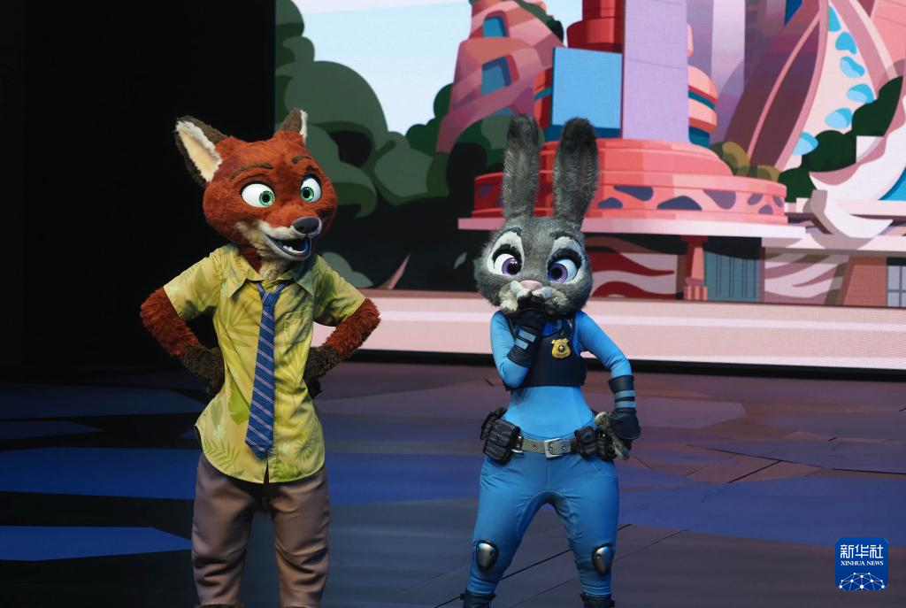 9月5日,在上海迪士尼乐园“疯狂动物城”园区揭晓仪式上,“狐狸尼克”和“兔子警官朱迪”亮相。
