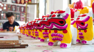 9月8日,在陕西宝鸡市西府里文化艺术村,中国工艺美术大师、陕西省非物质文化遗产社火脸谱绘制技艺代表性传承人李继友在绘制马勺脸谱。