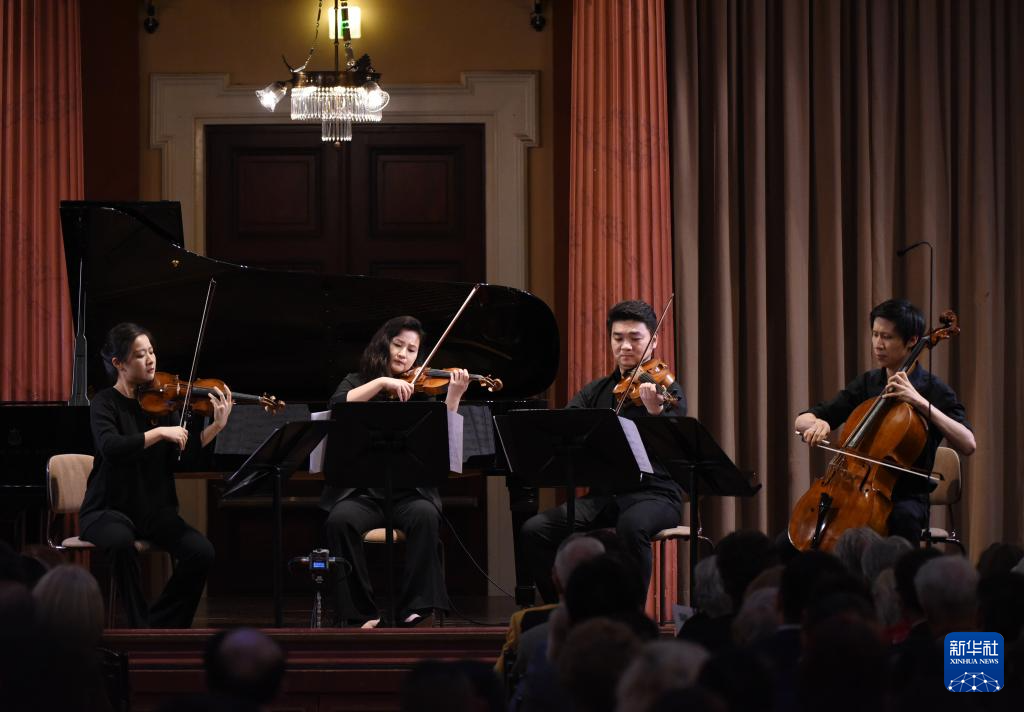 8月10日,在奥地利维也纳,来自中央音乐学院的演奏者在“听见当代中国”——中国当代作曲家室内乐作品音乐会演奏曲目《风信子》。