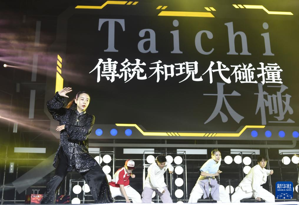 10月16日晚,演员在活动现场表演开场节目《太极》。