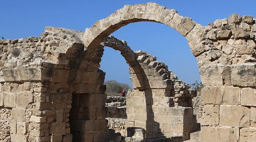 这是11月8日在塞浦路斯帕福斯考古公园内拍摄的一处遗址。