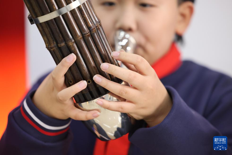 11月22日,河北省霸州市胜芳镇红光小学的学生在排练笙管乐。