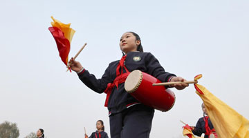 11月25日,工作人员在活动上为孩子们表演互动节目“真假美猴王”。