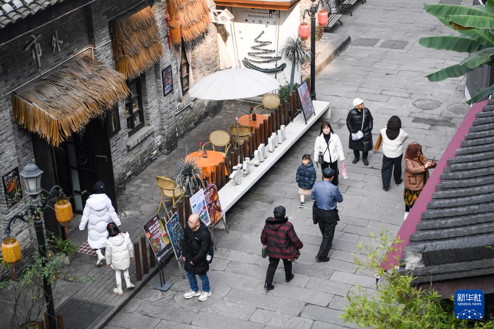 12月24日,市民和游客在重庆龙门浩老街休闲。