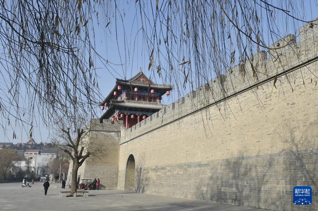 1月6日,游客在浚县古城的土圆粮仓内游览。