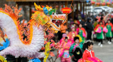 这是2月24日在柬埔寨西北部暹粒市拍摄的主题为恐龙的巨型彩灯装置游行(无人机照片)。