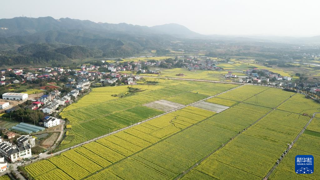 这是3月19日在安仁县稻田公园拍摄的油菜花田(无人机照片)。