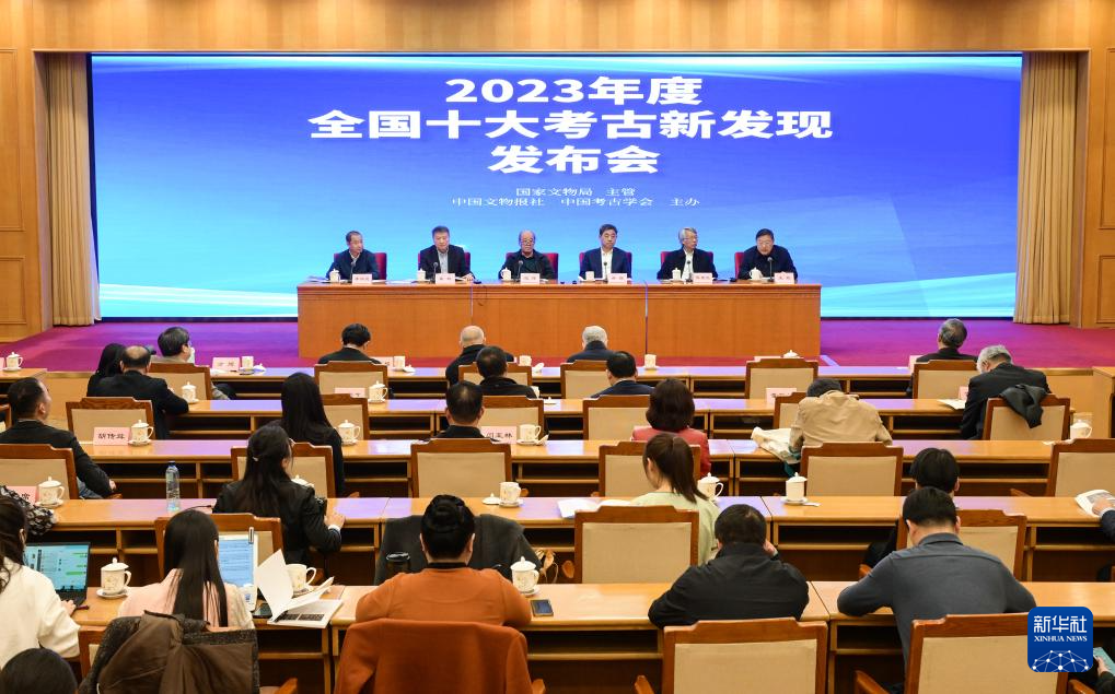 这是3月22日拍摄的2023年度全国十大考古新发现发布会现场。