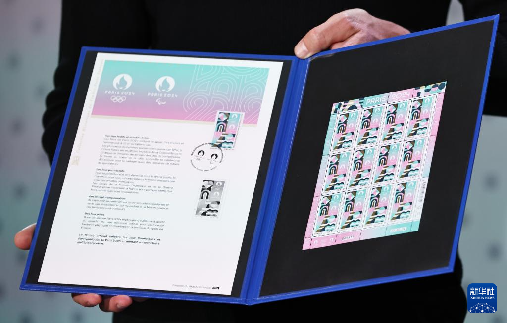 这是3月26日拍摄的巴黎奥运会及残奥会官方邮票。