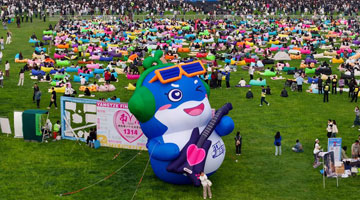 当日,云南省西双版纳傣族自治州举行泼水狂欢活动,人们欢聚在景洪市泼水广场,用相互泼水的方式互送祝福,庆祝泼水节。