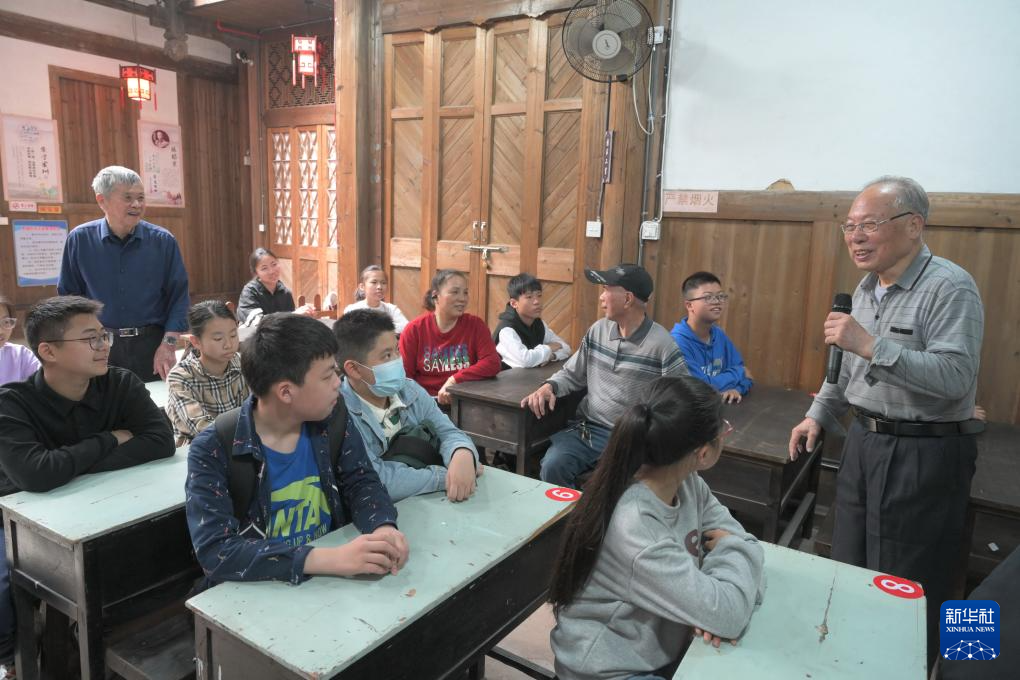4月20日,书屋管理者陈松年(右一)在“台屿农家书屋”与小学生分享“知识就是力量”的讲座。