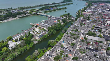 位于扬州江都区的邵伯古镇(无人机照片,4月25日摄)。