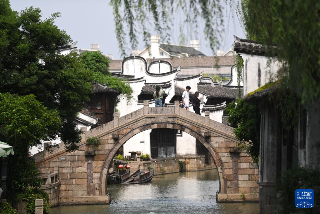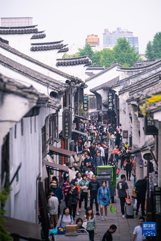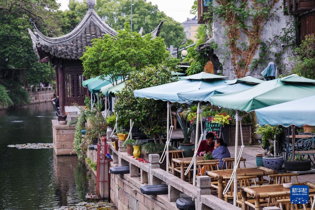 4月26日,游客在嘉兴市月河历史街区观光游玩。