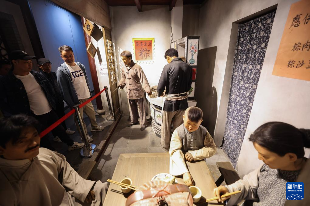 4月25日,游客在月河历史街区的粽子文化博物馆参观。
